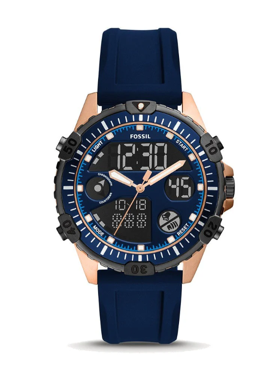 Featuring a bold navy silicone strap, this watch offers a sporty yet refined look that stands out effortlessly. The unique analog-digital display combines classic elegance with smart functionality, giving you the best of both worlds in one sleek design.
