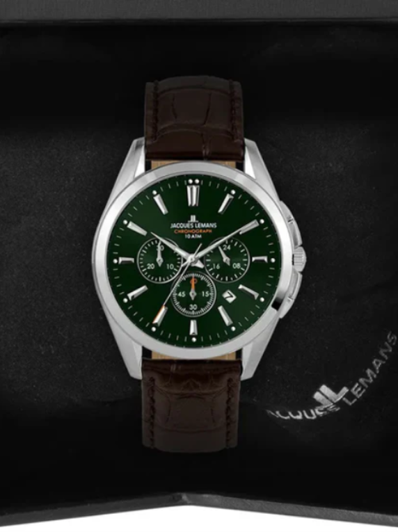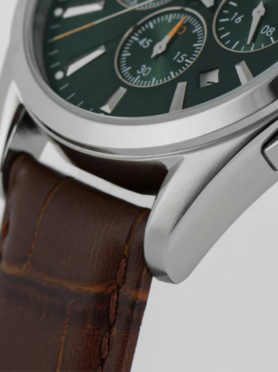 Leowol Boss Watch—rich brown leather straps paired with a striking green dial. A perfect blend of bold elegance and timeless design, crafted for those who lead with confidence. Elevate your everyday style with refined luxury and lasting comfort.